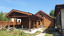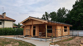 Завершение сборки бани из сухого профилированного бруса в Мытищенском районе Московской области.